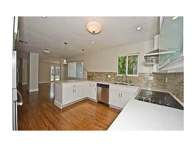 Beautiful completely remodeled 3 bed 2.5 bath home on corner lot located on desirable Golden Triangle. New Kitchen with white cabinets, quartz counter tops and SS appliances. Open and spacious floor plan. Large Family Room with French doors leading to int erior court yard and garden terrace. Impact glass windows and doors, new 2013 roof, new A/C, refinished hardwood floors, 2 car garage. Ready to move in. Truly a visual feast.