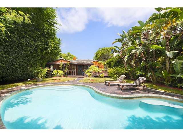 New to the Market! Charming mid-beach home updated throughout. Features include vaulted ceilings, stainless steel kitchen appliances, modern master bath, wood and tile floors, and garage. The third bedroom has been converted to an office. The grounds are completely private and fenced and also offer tropical gardens and pool.