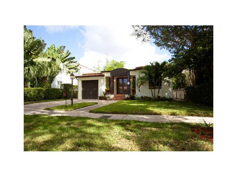 Best value in Coral Gables for 3/3 completely renovated pool home. New impact windows/doors, custom contemporary high-end kitchen cabinetry, counters/backsplash & stainless steel appliances. Beautiful hardwood floors in all rooms except baths. Designer lighting fixtures in all rooms. Master suite w/walk-in closet, dual vanity & water closet. French doors open to covered lanai from family room & Master suite. State of the art EcoSmart tankless water heater. Privately situated on landscaped, fenced lot.