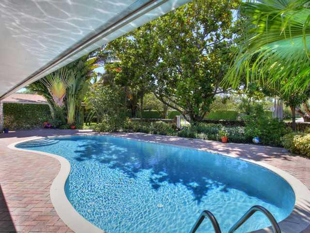 Warm updated home set around a lagoon shaped pool and patio with a wonderful under roof area to enjoy our tropical lifestyle. The kitchen opens to a large family room. Two nice sized bedrooms share an updated cabana bath with marble floors and glass bloc k. The spacious master has a sitting area and his & hers walk in closets and an updated bath with Jacuzzi tub, separate shower, bidet & toilet w extensive use of glass block & marble floors. Excellent schools. Immaculate condition! 2 Blks W. of Howard Dr.