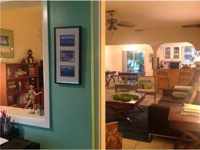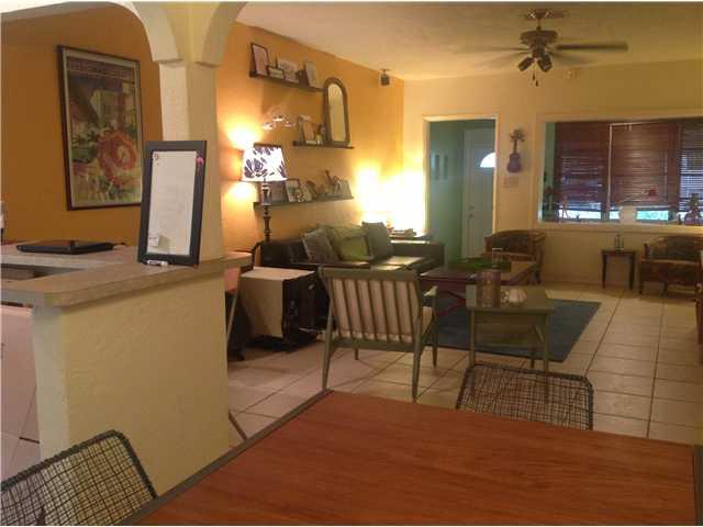 Appealing 2 bedroom 2 bath home with lots of character. 1-car garage, newer tile roof, pleasing architectural features inside and out. Large updated kitchen with open floorplan featuring arched pass-thru and breakfast bar with column; gas stove. Nice-siz ed living room with neutral tile. Tropical landscaping; fenced backyard with paver patio. Great opportunity East of US1