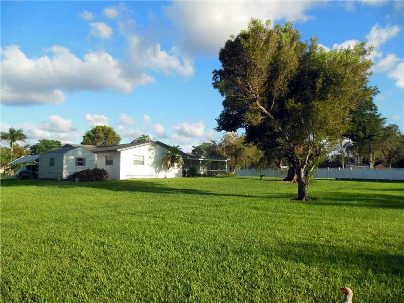 Davie Acre Home with no HOA, great neighborhood, and horses welcome. This 3 bed 2 bathroom home features open floor plan, large kitchen with wood cabinetry, snack counter, big pantry, and newer appliances. Hurricane panels, screened patio, large bedrooms , back yard big enough for a football field, storage shed, Trane AC, plus so much more. Property is off of Hiatus Road between 595 & Griffin Road just minutes away from highway, great shopping