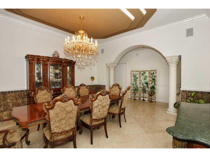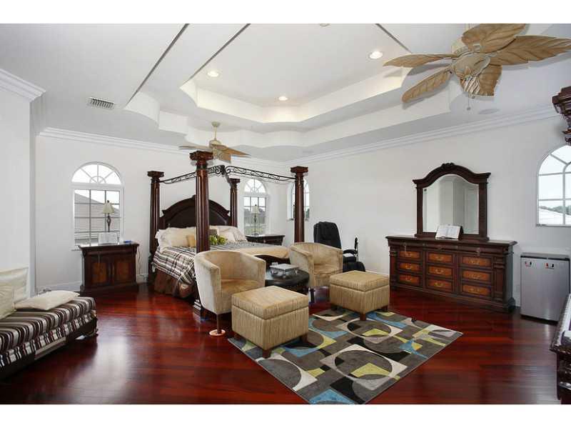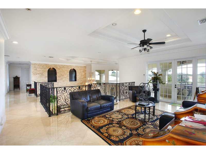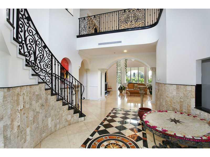 Magnificent 2 story water front Estate w/ gorgeous architecture on an acre of land!Has 5 lg master suites w/ 400k onyx bathroom plus library,home theater,4 car garage.Coffered 35ft ceilings,columns thru-out the house, private elevator, hurricane impact gl ass, living rm w/fireplace,dramatic staircase w/iron railing,luxurious onyx A granite are just some of the features.1,279 sf cover patio to enjoy outdoor living. This is a gated community where the "Rich and the Famous" live.