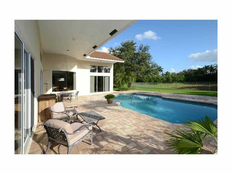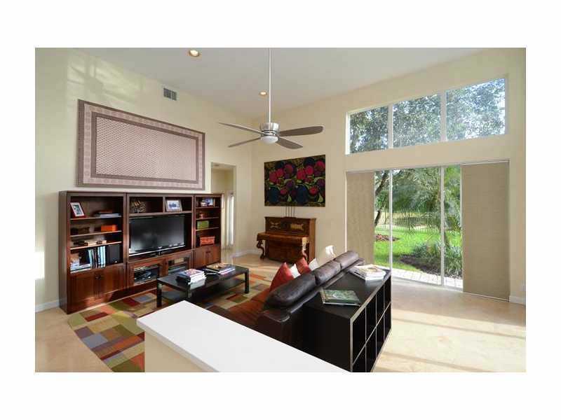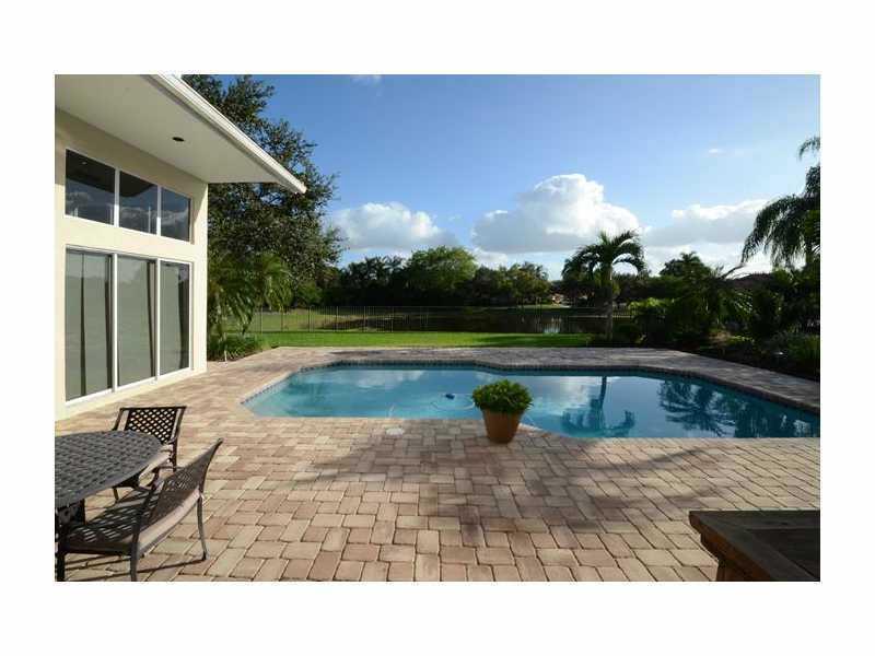 Perfectly placed on a quiet cul de sac street, this sprawling 1 story has New 24 inch Travertine floors throughout living areas with soaring 16 ft ceilings, nestled on a 1/2 acre corner lot, with mature landscaping.& Stunning lake & pool views. Gourmet c ustom kitchen features center island, granite counter tops and SS appliances. Travertine flooring in all baths, custom blinds, Roof has been recently replaced. Rare side entry 3 car garage with elegant curb appeal. Shows bright & airy. THIS IS A MUST SEE