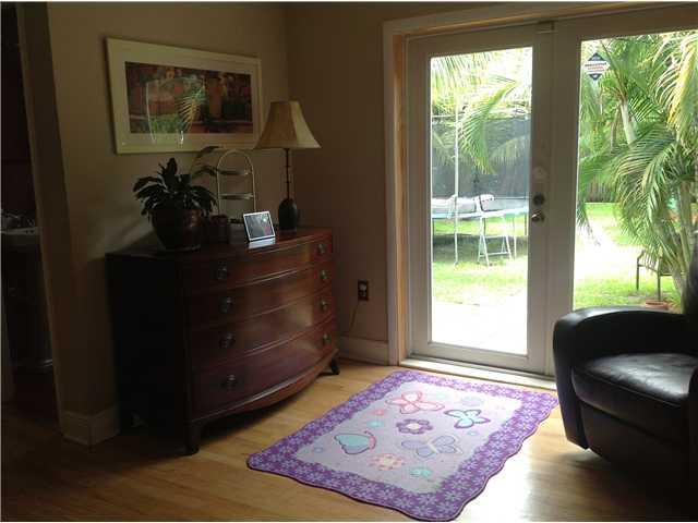 Beautiful 3 bed/ 1.5 bath home. Great for entertaining! Spacious living room, wood floors, impact windows & doors. Front enclosed porch w/ sitting area,wood deck, fenced backyard, nicely landscaped, mango tree, room for pool. Tile roof, tank-less water he ater.Large open covered patio.Garage converted w/ permits- may be used as 3rd bedroom.