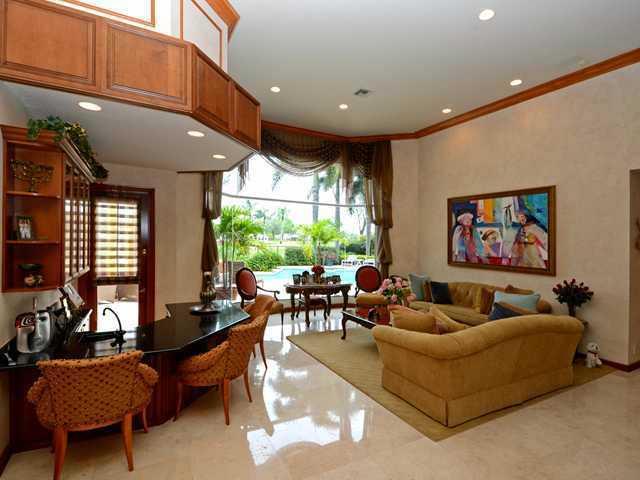 Pride of ownership shows in this immaculate custom estate with beautiful golf views* home includes a huge playroom/billiard/theater room & office/den* Original owner's* 1st time on market*updated kitchen* 2 bars, 1 is wet* Built ins* Laundry room with wal k in closet & ceramic sink* Accordian hurricane shutters* marble flooring in living areas * crown moldings * 8 lots of closets* heated pool/spa with baby fence * Circular pavered driveway w 3 car garage complete w garagetek system