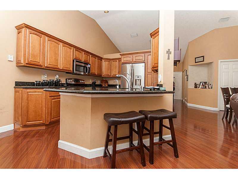 Beautifully maintained 3 bedroom, 2 bath home in The Falls featuring wood flooring throughout, updated kitchen with custom wood cabinets, granite countertops and stainless steel appliances. Wonderful patio and screened pool area; great for entertaining! Enjoy everything the Weston lifestyle has to offer including A+ schools, parks, dining, shopping all at close proximity to the highways. A Must See!