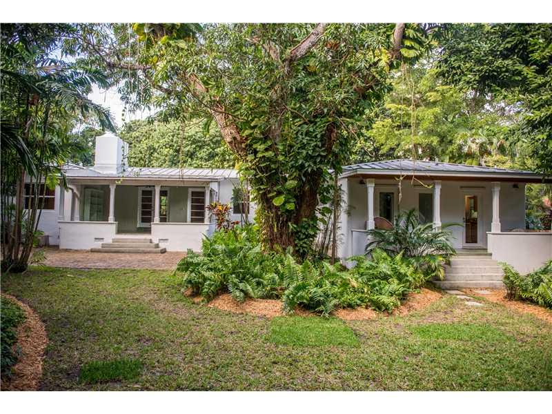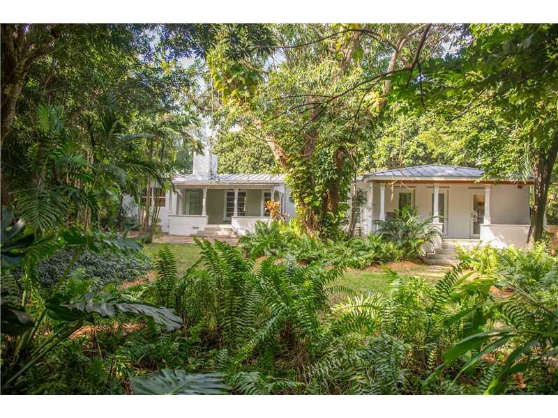A winding drive leads to this lovely home which is set back within a mature tropical botanical garden. Expansive porches, wood floors & Art Deco details, inc. orig. fireplace. French doors open to 20,000 SF of land w/ potential to add pool or expand exis ting home. Main house has 2BR/1.5BA. Guest house has vaulted WB ceilings,LR/DR/Kitchen & 1BR/1BA. Mins. from downtown, Key Biscayne & the Beaches. Close to the Grove village center's many galleries, boutiques, cafes and bayfront parks and marinas.