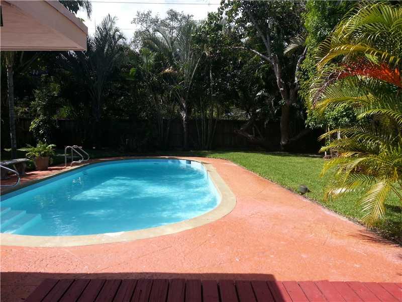 Lovely house with a Very welcoming and relaxing felling. Peaceful deck introduces you to a sparkling pool surrounded by over 40 palms. If you were looking for a piece of paradise within the city, here it is. Sprinkler system, new interior doors, new porc elain floors, stainless steel appliances, new grass installed, freshly painted.