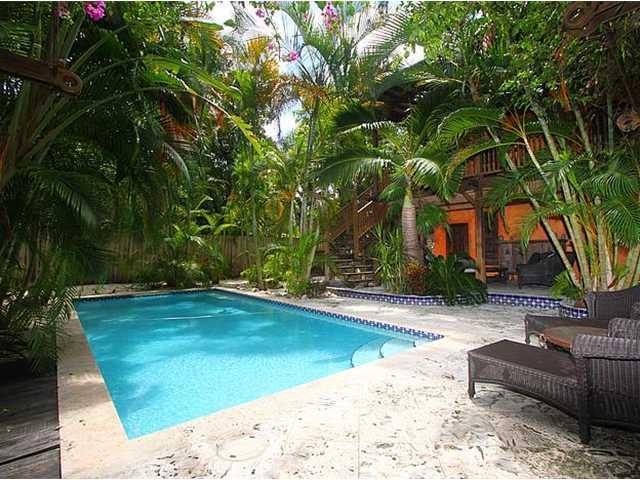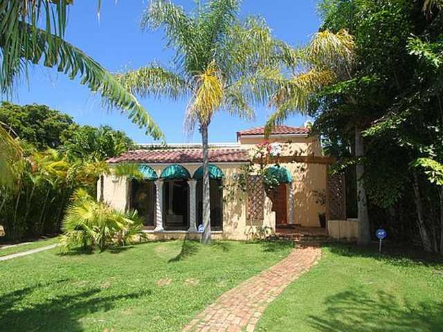 Charming Old Spanish 3/2 w/Moroccan-inspired 2/1 guesthouse on huge 10,000 SF tropically landscaped lot. Old world details include arched windows, high ceilings, pesky cypress beams, fireplace, wood & tile floors. Two level guesthouse has media & laundr y rooms downstairs, 2 bedrooms/1 bath upstairs. Huge treehouse-like terrace overlooks secluded pool with enchanting patio area. This truly unique property is secluded yet walkable to restaurants & retail on 41st street. Owner occupied.
