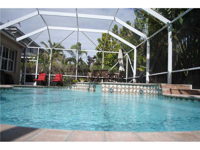 Spacious 4 bedroom & 2 bathrooms 1 story home in sought after Savanna. Alamanda model with a contemporary design with great views of the pool. Kitchen is totally remodeled with maple wood kitchen cabinets, granite counters and stainless steel appliances. Pool area and extended deck surroned by matured tropical trees. Perfect to relax and entertain. Savanna offer 1st class amenities with a Club House, soccer fields/basket courts/playground & more. Great school district for your family