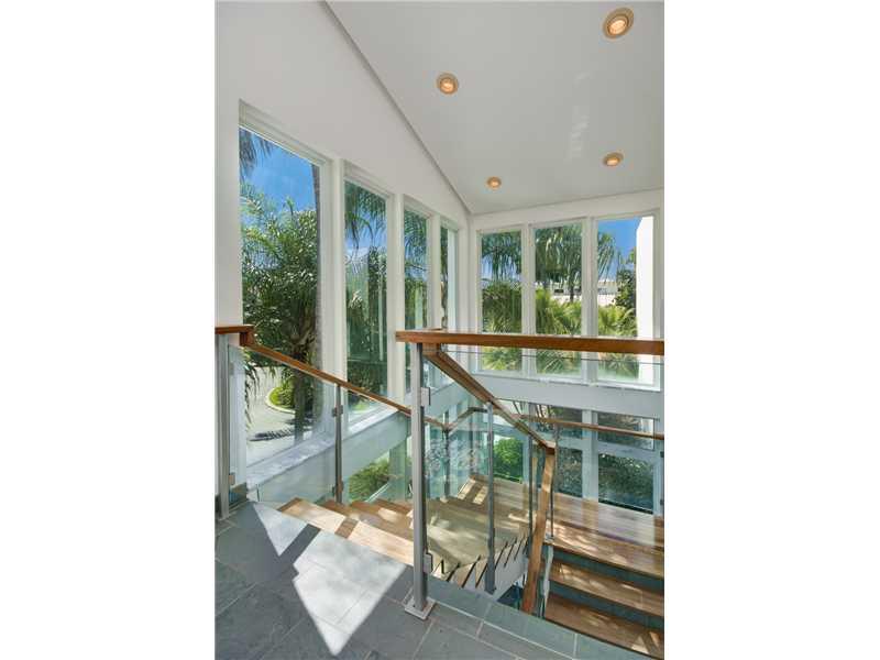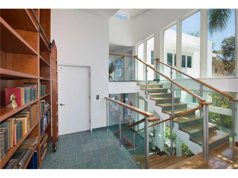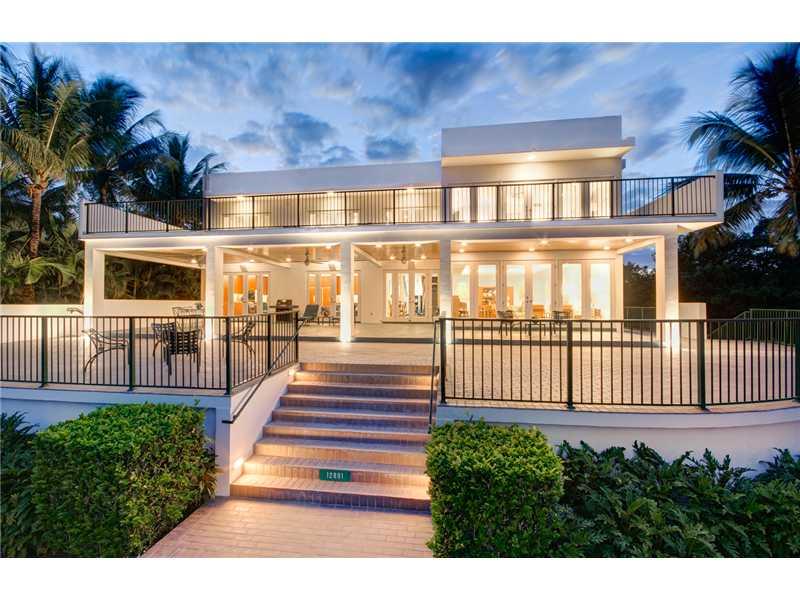 Contemporary home built in 2001 situated on a prime cul-de-sac maximizes its privileged location overlooking a wide turning basin leading directly to Biscayne Bay. Comprised of 5 levels with volume ceilings, floor-to-ceiling windows & French doors that sp an across the back and open to the 1,000sf covered porch & finally a unique rooftop viewing loft which offers views of the water & the lush surroundings. Slate floors, impact windows & doors, elevator & heated lap pool complete this modern residence.