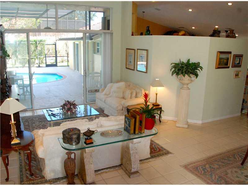 Weston living at it's finest in prestigious Orchid Island. Spacious split-bedroom floorplan w/lots of natural light. Stainless steel appliances, tile in living area, carpet in bedrooms. Huge family room with breakfast nook by the kitchen for open space li ving and formal dining and living room by the entrance. House wraps around pool, private backyard, newer AC and water-heater, 2006 roof and accordion shutters. Move in ready in its well kept original condition or ideal for a modern facelift. A must see!