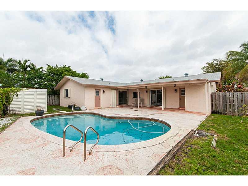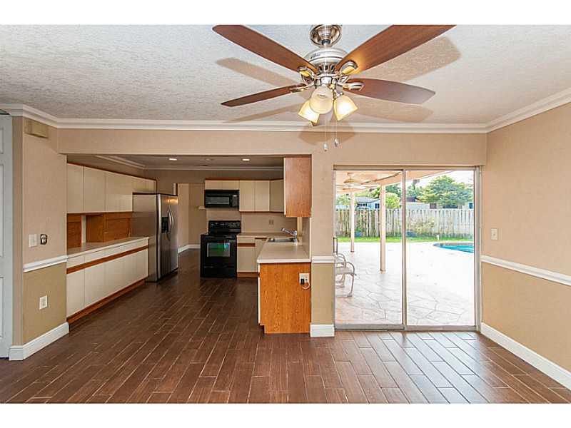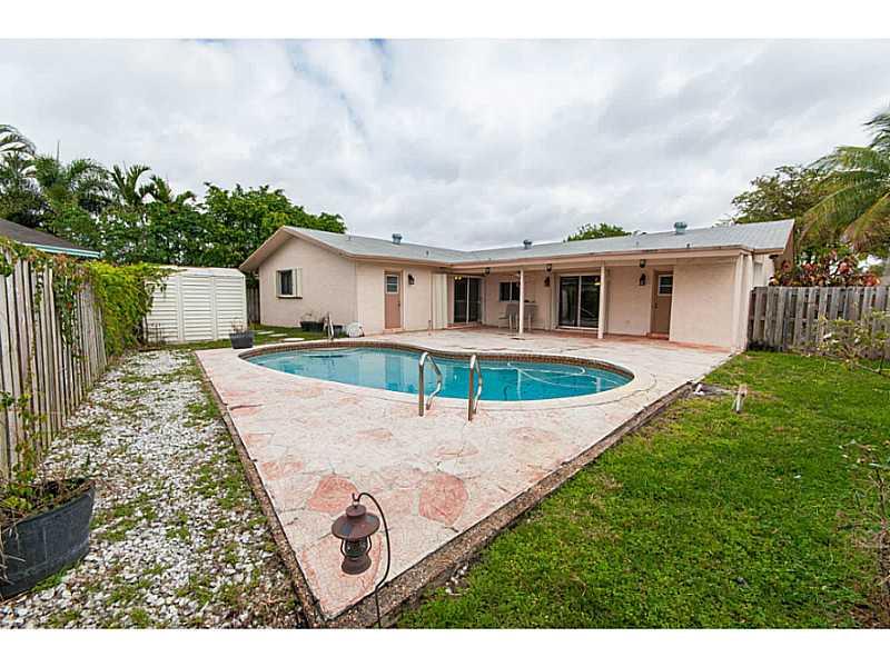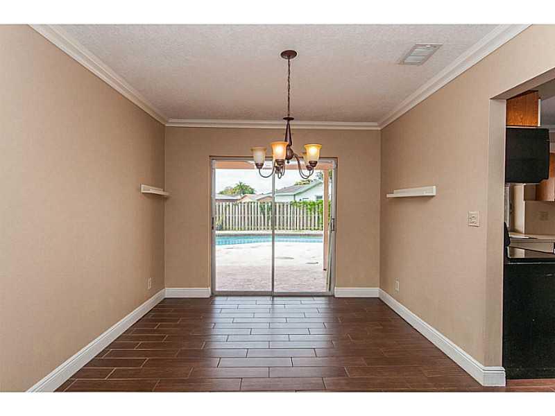 Spacious 3 bedroom 2 Bath, pool home on an oversized corner lot in a quiet neighborhood. 2 car garage with a new door, Split floor plan, master bedroom walk-in closet, large secondary bedrooms, both bathrooms have access to pool, Wood look ceramic tile th ru-out; crown moulding & chair rail; plantation shutters; accordion shutters; alarm system. Roof replaced 2008.Completely fenced yard and storage Shed. No HOA. Great Davie Schools. Ideal location close to colleges and shopping. Not a short sale or REO!