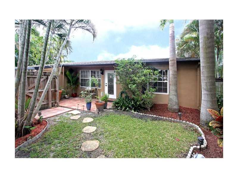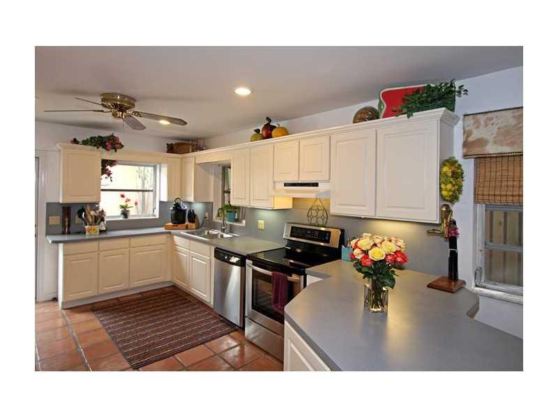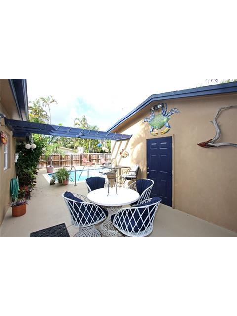 Tropical enclave of a classic Florida home with 4 bedrooms and 3.5 baths, set on an over sized corner lot. A compound hidden from the street by a wood fence, surrounds the expansive well maintained home. The home could be turn key with an optional furnitu re package. Polished tile and cement floors add to the island style of the décor complete with a renovated kitchen, new LG stainless appliances, roof and AC. Detached Cabana or hobby room and large pool are completely gated with tropical palms for privacy