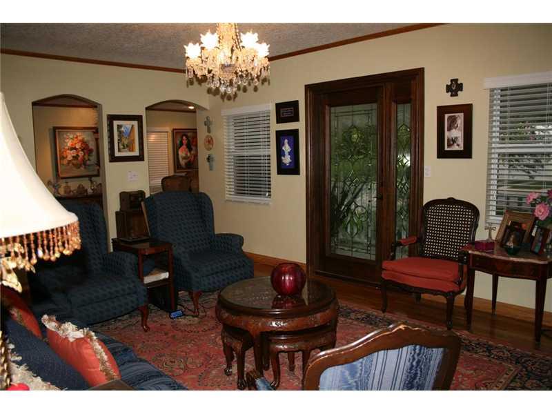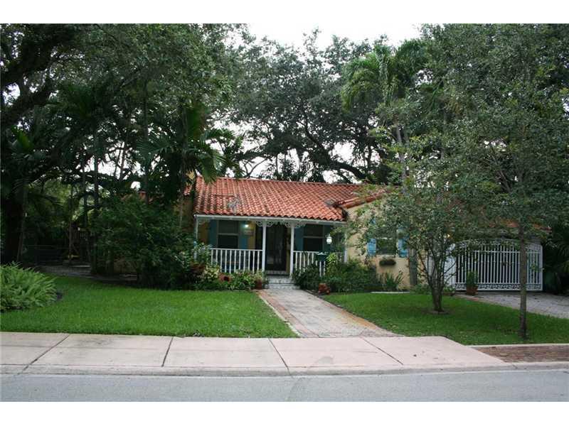 Double Coral Gables lot on a very quiet and pretty street. Updated charming house, large master bedroom with large bath bidet, two more bed rooms and 1 bath --kitchen: breakfast area/cathedral ceiling-fireplace, car porch with electric gate. Approved arch itectural plans for an additions for master bedroom/bath & cover terrace. Impact windows. 1,953 sq ft per Architect. Lot 9,844 sq ft.