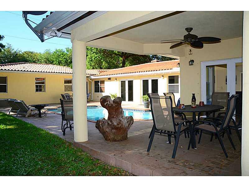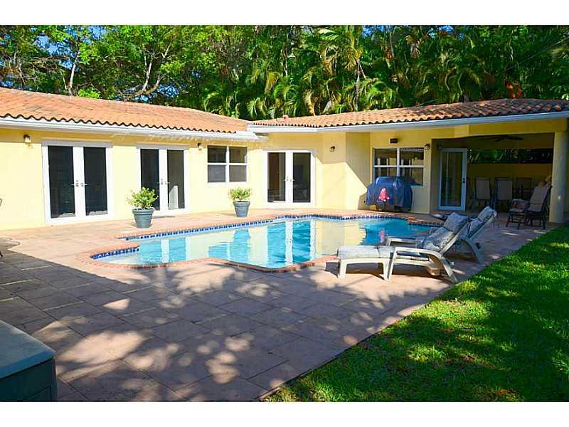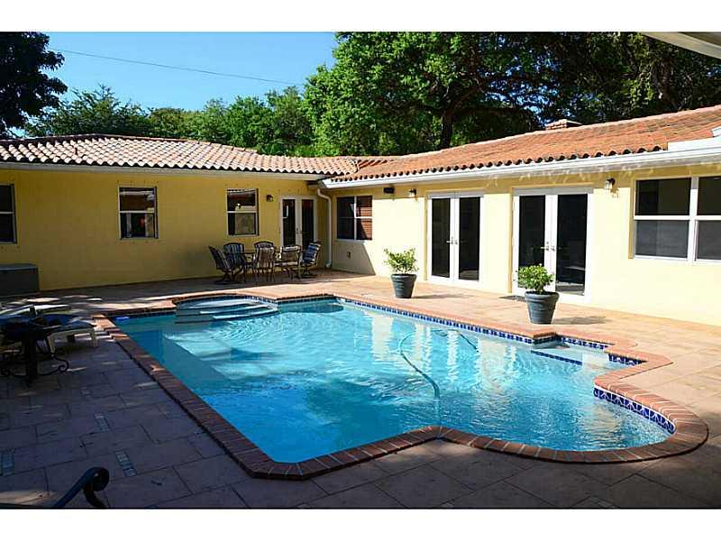 Beautiful 4 bed, 4 bath home centrally located in South Gables. This home features an oversized Master suite with dual custom walk-in closets, built in office, a separate Jacuzzi tub and bidet. Bedrooms are closed off to make the perfect entertaining hom e. The living room masterpiece is a brick fireplace topped off with gorgeous wood paneled vaulted ceilings. Eat-in kitchen with granite countertops and stainless appliances is central and open providing a great room feel with the option of separation.