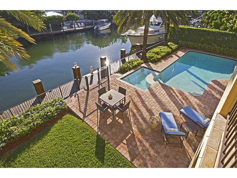 European elegance defines the comfortable interiors of this villa featuring an unique enclosed interior courtyard. The elegant living room with french doors offers a panoramic view of the palm tree lined pool and spa. Gourmet kitchen, eat-in and family areas with great water views. Formal dining room. Generous master suite, spacious walk-in closet, his-and-hers master spa bath. Water frontage 100 ft. complete with a full-service 80 ft. dock. Cabana bath, gym and more. Offered furnished.