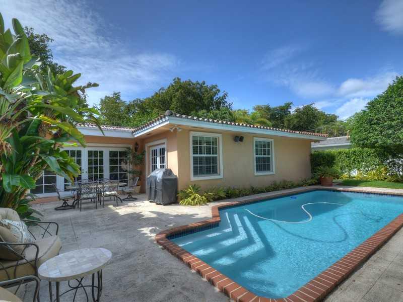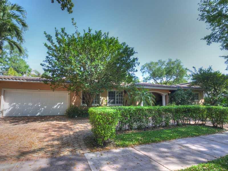 Renovated four bedroom, four bathroom one-story family residence in the adored Platinum Triangle primely located in Coral Gables. Black speckled granite counters with stainless steel appliances opens to the great family room. Spacious master suite split privately from living space. Banks of French doors open to the generous yard and pool area. Mostly impact glass windows. Two car garage w/extra storage. Perfectly priced. Double lot.