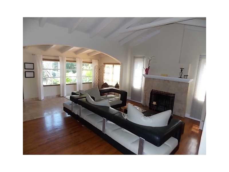 Beautiful, elegant, bright, loaded with character! Updated 4/2 with huge 20'x40' diving pool, double car garage + separate 1/1 guest house on oversized corner lot on quiet street in Miami Shores. 1930s gem features open beam cathedral ceilings, archways, working fireplace, mosaic tile + wood floors, marble foyer, separate formal dining and living room, open kitchen w/granite bar to family room, S/S appliances, granite, oak cabinets. French doors to patio. Marble/onyx baths, new A/C, marble driveway.