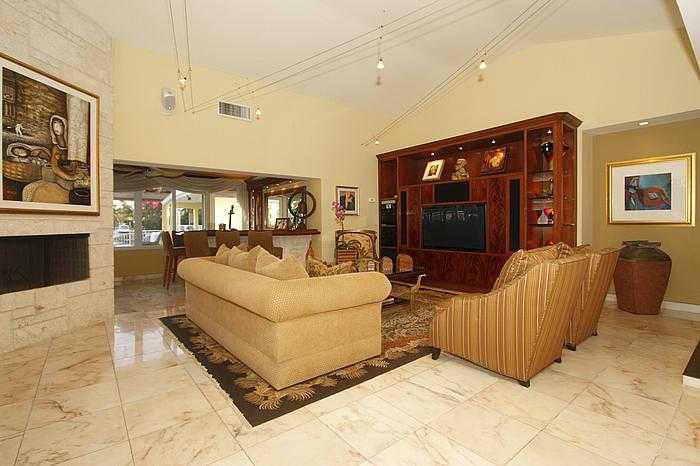 Beautiful renovated waterfront home offers 5/4 + office/den *100' seawall *40' dock*no bridges to bay *Rare & expansive water views of wide canal intersection *Island kitchen offers gas cook top *New Subzero refrigerator & wine storage *Granite tops & cus tom cabinetry *Open living areas with marble floors, cable lighting & built in bar; great for entertaining *Large master suite with sitting area, Jacuzzi & steam shower *Lushly landscaped with Zen-like pool/patio area, perfect for relaxing or entertaining