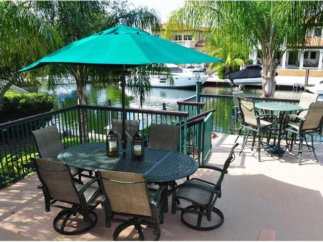 2 story home on the water, No bridges to Bay. Cedar beams, glass & slate finishes, volume ceiling & large social areas. Main level has 3 bds/2 ba. Features wood shutter sliders & window trmts, updated kitchen w/SS appls. Master wing upstairs. Lower level has side-entry 2 car gar, sep entry bonus rm, bath & loads of storage space. Built up high & well maintained. Home opens up to great entertaining areas poolside. Railings surround patio area and look over dock & offer great view of the waterway