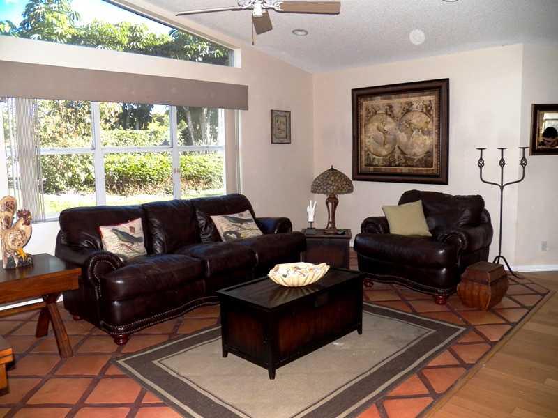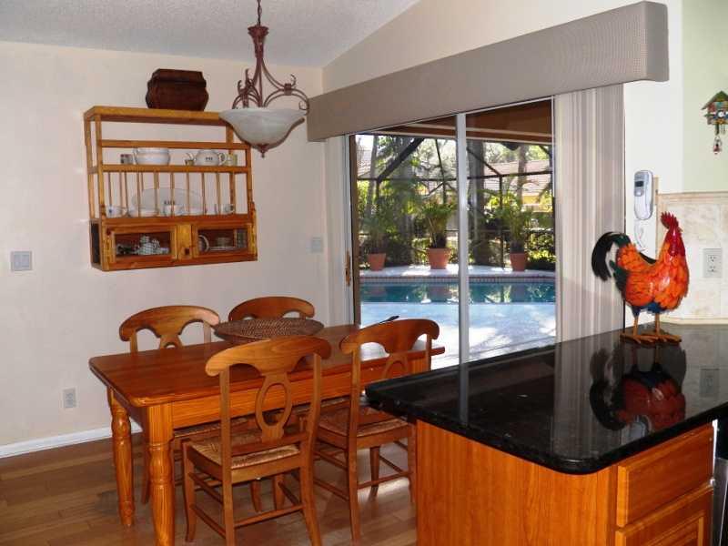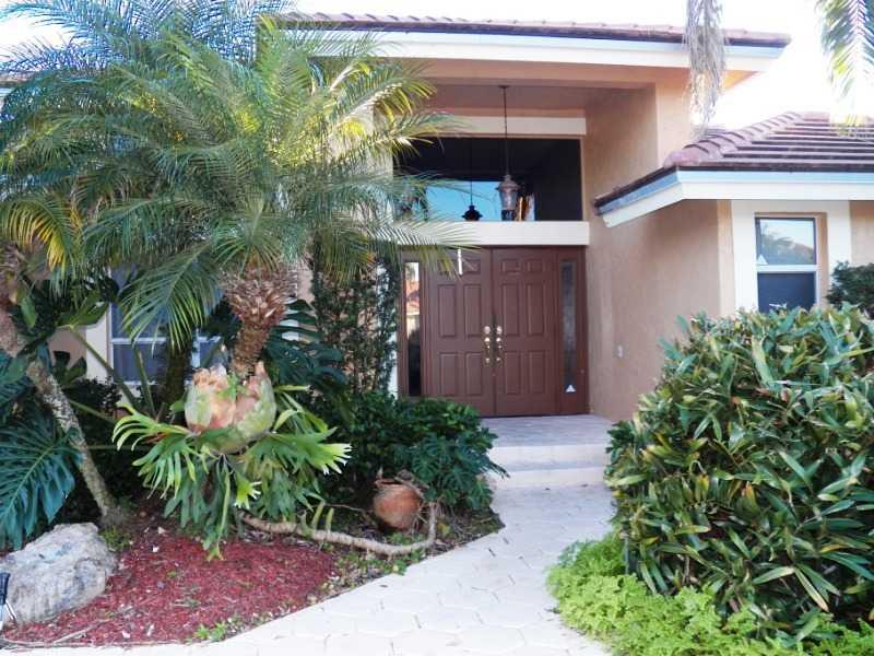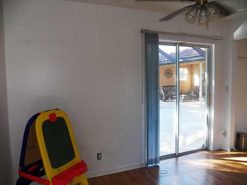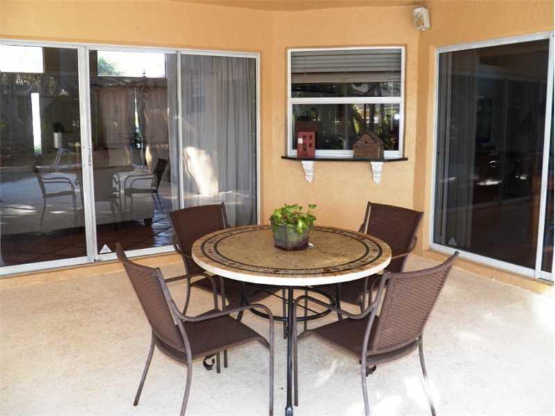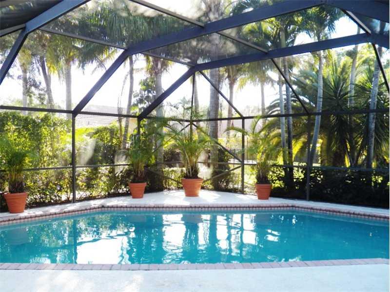 This easy to live in home is nestled in the majestic palm neighborhood of Sunset Springs. It features a tropical screened in pool area and is situated on a cul-de-sac with no neighbors on one side. The split floor plan has three of 4 bedrooms & kitchen overlooking the oversized & covered patio area. The kitchen is upgraded with wood cabinets, granite counters & SS GE appliances. The master bath is beautifully remodeled. The cabana bathroom is shared by three bedrooms. Flooring is Mexican tile and wood