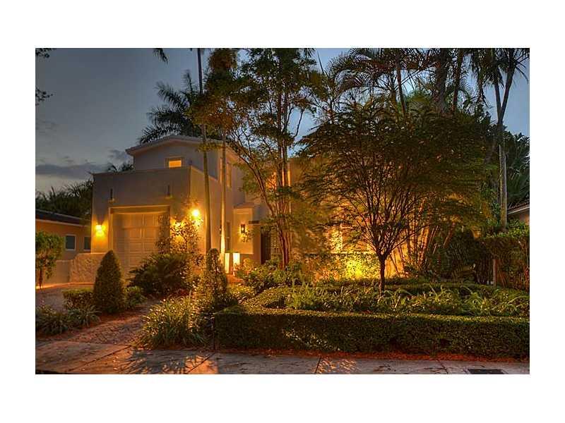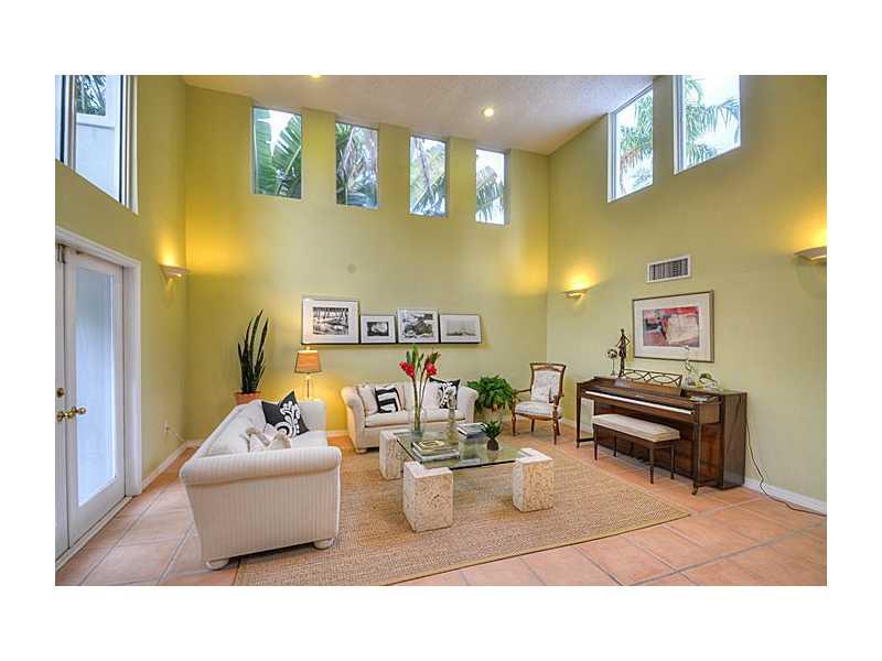 So. Gables 2-story Contemporary boasts a sophisticated appeal w/dramatic living rm, high ceils & walls of windows for lots of natural light, revealing a lush, tropical backyard w/splash pool for casual living. Flexible floor plan, 3/3.5/1 (master + 1 bdr m up) all w/walk-in closets. New roof & freshly painted. Formal din rm, powder rm, eat-in kit & cozy fam rm flow nicely w/modern styling of niches, French doors & pretty tile flrs. Move in & make this yours to proudly call home!