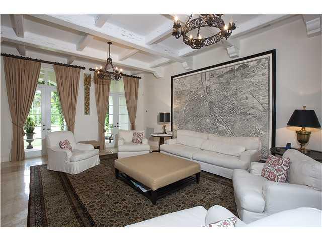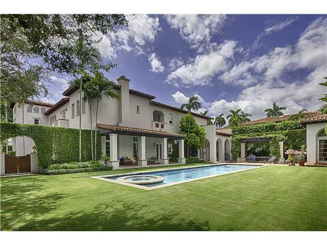 This exquisite Miami Beach dream home, built by architect Zeb Jarosz is located on a double lot on gated La Gorce Island. Finely appointed details incl. hand painted recreation of Trompe I'oeil, stained-glass windows, lighted wall niches, pecky cypress be ams, Italian Venetian plaster, authentic keystone banisters, wood-beamed ceilings, 3 working fireplaces, and baths all in Carrera gold marble. The house offers a private spa and gym with sauna, steam and whirlpool. See attachment for expanded description.