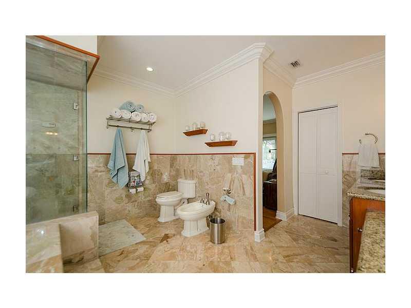 GABLES BY THE SEA-Gated Community East of Historic Old Cutler Rd. Brick pavered circular drive leads to immaculate home with 2 car garage. Updated kitchen overlooks pool & covered patio. Complete with Kitchenaid appliances, Corian counters, wood cabinets with pull-outs and Jenn-Air cooktop. Impact windows, hi-hat lighting, crown molding, travertine & wood floors, central vac. Spacious Master bedroom and Master bath features steam shower & separate Jacuzzi tub. Built-in BBQ outside w/burner stove.
