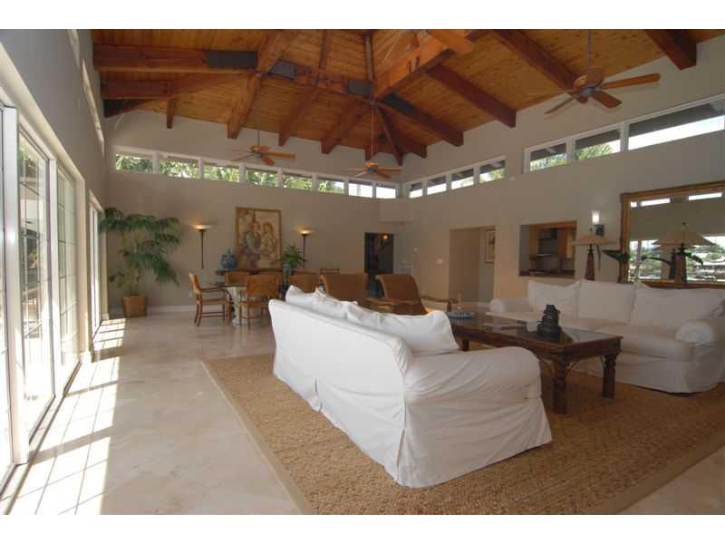 Exclusive Hibiscus Island 90ft on water w/beautiful water & downtown skyline views from almost every room 6/6. Walls of glass & multiple skylights. Massive beamed ceilings soar 22ft in the 700sf great room. Guest house, pool & sauna. 1½ lots w/lush landsc aping. 850sf dock can accommodate 2 watercraft including 70ft yacht.Tennis court previously on property. Exciting home is located in coveted community on a gated island w/neighborhood park & tennis courts, minutes to Airport, Dwntwn. Feels like a resort!