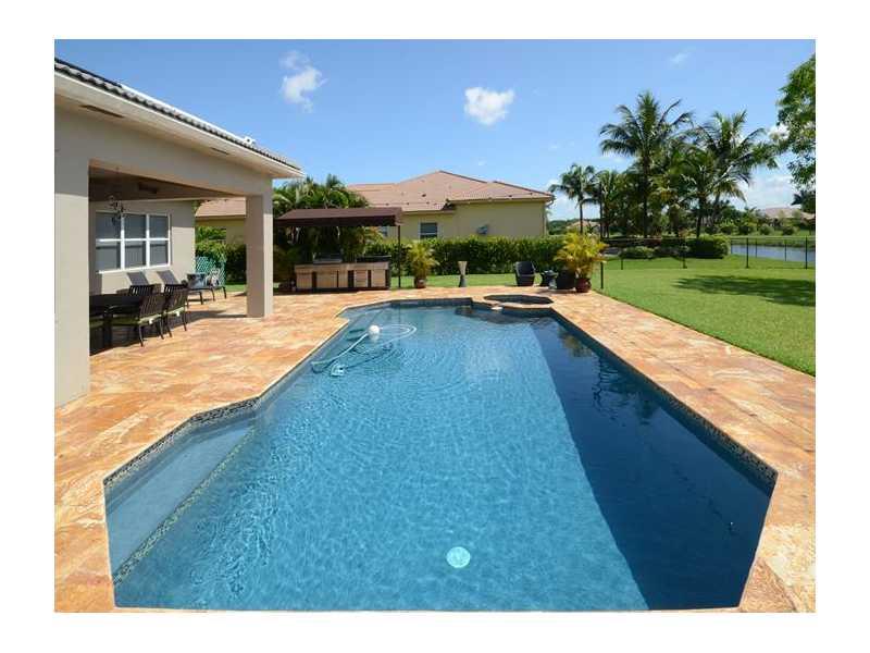Unique home in exclusive guard gated Imagination Farms! Completely remodeled with every modern update imaginable! Fireplace! Wood-look tiled living areas/bedrooms with stylish bamboo! Modern Italian kitchen has quartz counters, wood cabinets, steel applia nces including double oven! Huge master suite has his/hers walk-in closets, luxurious master bath, free-standing tub/separate shower with bench, 2 sinks & TV hook-up. Closet organizers/new doors. French doors. New A/C. Fabulous pool/Jacuzzi. Marble patio.