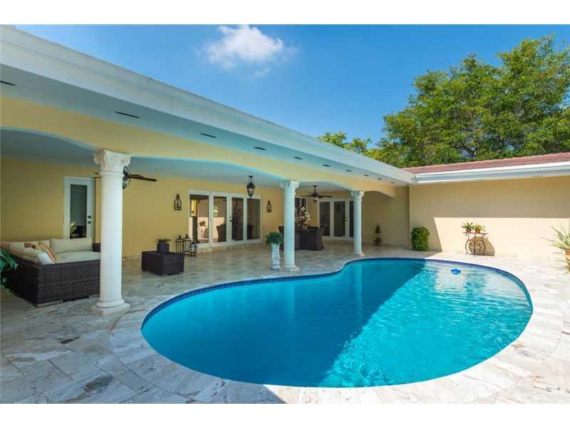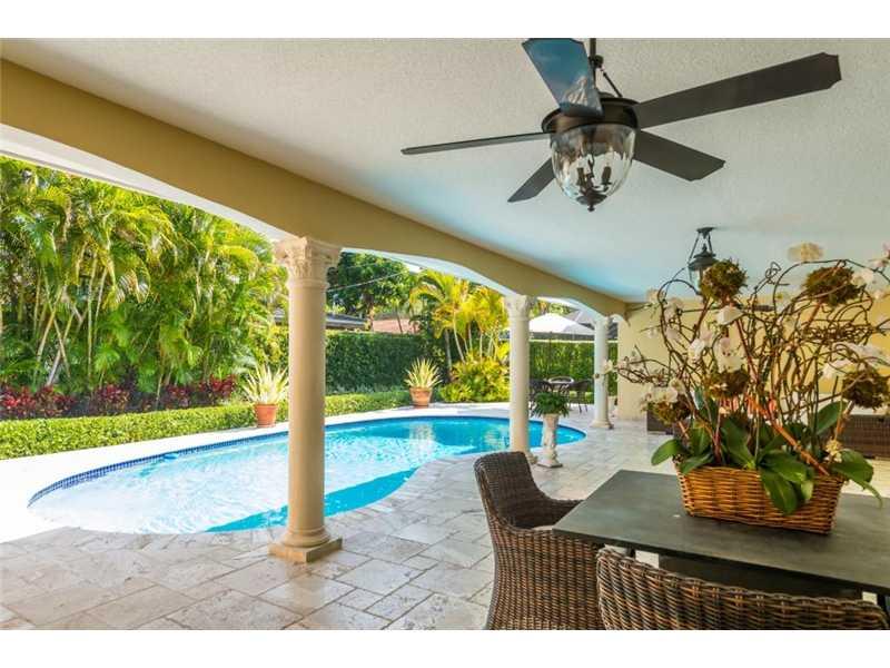 This beautiful home in south gables, situated on lovely tree line corner lot, remodeled 2009, kitchen with thermador and sub-zero appliances, travertine floors,impact french doors and windows,open to pool/patio