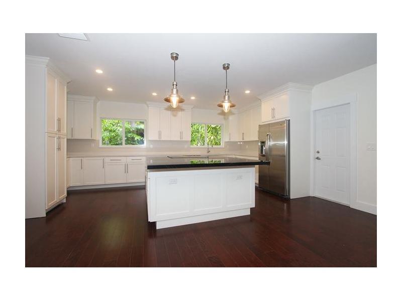 Beautifully renovated Gables home on prime, quiet tree lined street. 3BR/2BA, sunny open living spaces with wood floors, stunning new kitchen features solid wood cabinetry with an abundance of cabinet space, stainless appliances, quartz counter tops, fabu lous cooking island with bar seating, new baths, new septic, new plumbing, new impact windows, outdoor entertaining deck and expansive private gardens with plenty of room for pool. A perfect "10"!