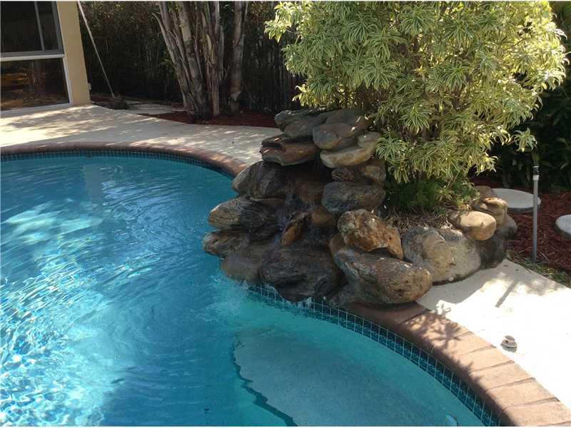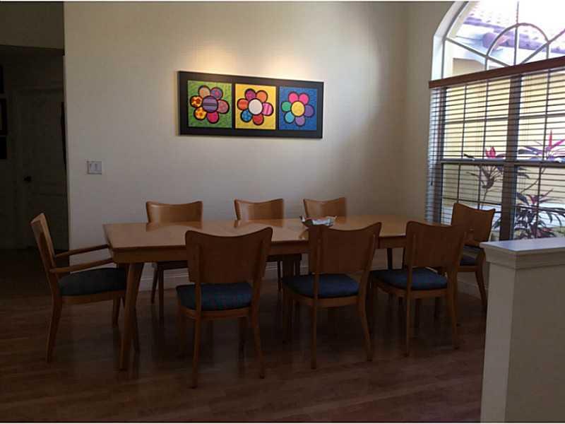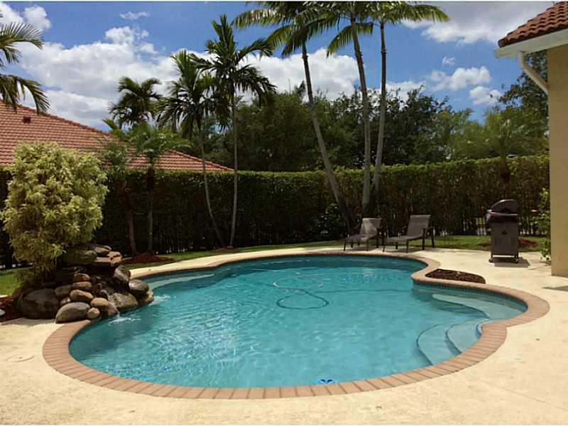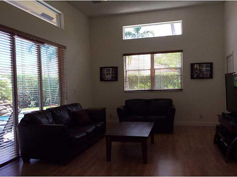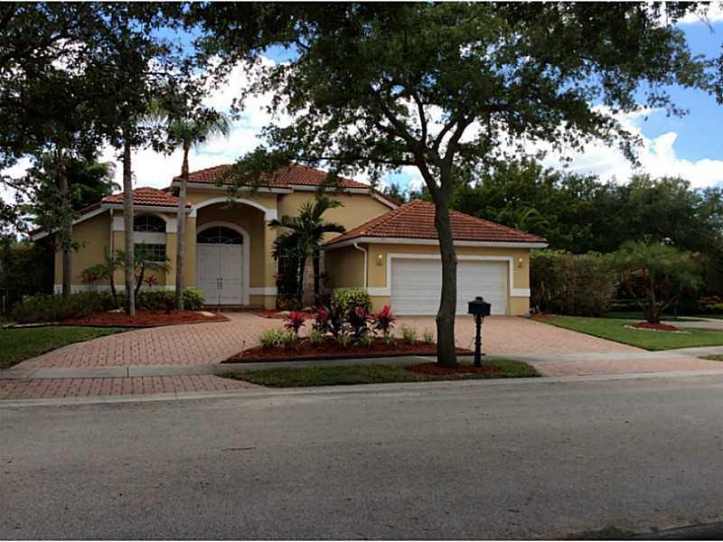PRICE REDUCED in Weston Hills Country Club. This fabulous updated in 2009, 4 bedroom, 3 full bath triple split bedroom plan features updated bathrooms and kitchen w/breakfast area, eat-in counter, S/S appliances/granite counter tops. Double door entryway opens to bright wonderful floor plan featuring 12 foot high ceilings, showcasing tropical pool area. Formal dining/ living, huge family room, wood laminate floors(No Carpet),jacuzzi,marble tile in master. Pavered circular driveway fits 4+ cars, A+ Schools