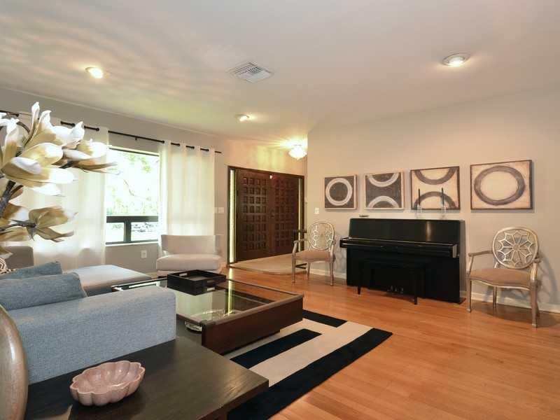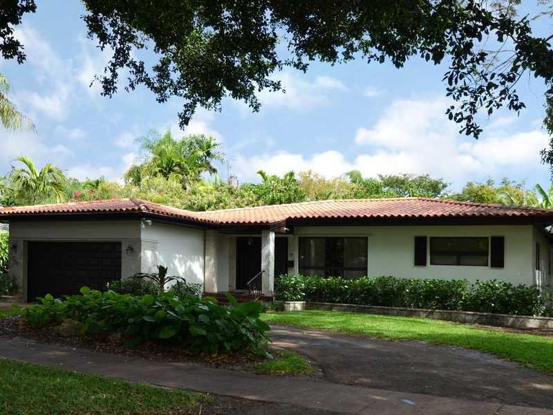 Meticulously maintained one-story 1950s gem on double sized South Coral Gables lot. This mod 3/3 has beautiful hardwood floors & an updated kitchen w/ stainless steel appliances. Spacious formal dining & living rooms w/ large Florida room w/ working bar. Great big yard w/ tons of fruit trees & deck perfect to entertain & BBQ. Two car garage w/ conversion. Centrally located to walk to new Ingraham, Sunrise, Jaycee & Merrie Christmas parks. Close to Sunset Elementary. Room for pool. Must see!