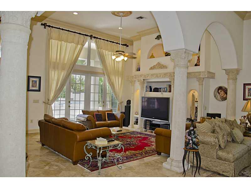 Live in exclusive Golden Beach, at an amazing value, in a beautiful Mediterranean masterpiece & experience the magnificent private beach just across the street. MUST SEE VIRTUAL TOUR. This 6/5 has gorgeous Italian marble in Country Tuscan Tile throughou t, soaring 14' ceilings, 4/4 on 1st floor, & 2/1 on the 2nd floor, open kitchen, family room, dining room & livingroom all meant to entertain. All appointments handcrafted. Yard is tropical oasis w/beautiful orchids. Dining room chandelier not included