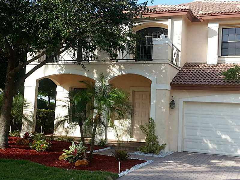 Beautiful 5 bed 5 1/2 baths plus den-office located in a huge corner lot that gives lots of privacy, pool and jacuzzi with gas heating system. One bedroom and one full bathroom plus cabana bath downstairs. Accordion shutters, granite countertop, SS appli ances, intercom system, tile downstairs and wood laminate upstairs, 3 car garage. Huge master bedroom with balcony and 2 walk-in closets, master bath with jacuzzi, and much more ! Great location close to state of the art Club House. Very easy to show.