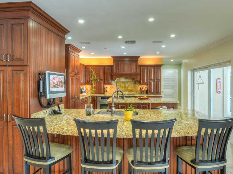This beautifully remodeled home sits on a 40,000 sq ft, tree-lined lot. A spacious open kitchen, with double ovens & thick granite counter tops, overlooks the living room and opens up onto a wonderful covered patio with remote control screening and large pool. The 4 sun-filled bedrooms and den have plantation shutters and the family room has a convenient wet bar. All this plus hurricane impact windows and a generator. Look no further!"
