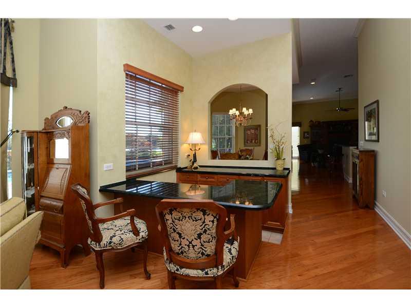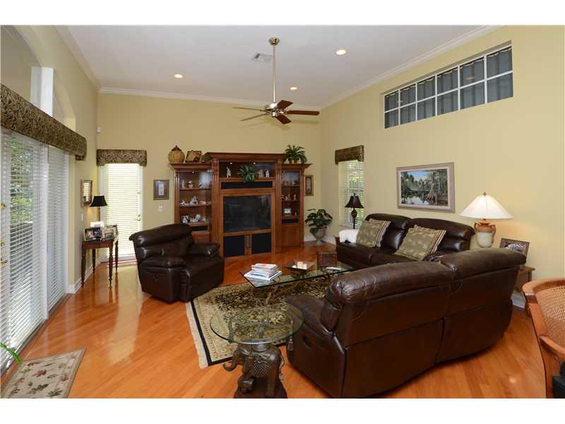 LOWEST PRICED HOME IN NEIGHBORHOOD!PRICED TO SELL*gated community of only 98 homes*4 bedrooms plus a den/office*Gorgeous WATER VIEWS*Wood floors in ALL living areas*Carpeted bedrooms*Split plan*Gourmet kitchen, under cabinet lighting,double wall oven,cent er island,desk area*step down bar*volume ceiling*crown moldings*butler's pantry *Plantation Shutters*crown moldings *French doors*wood burning fireplace* Master bedroom w 2 huge walk in closets w built ins*laundry room w cabinets/counter/sink & 2 closets