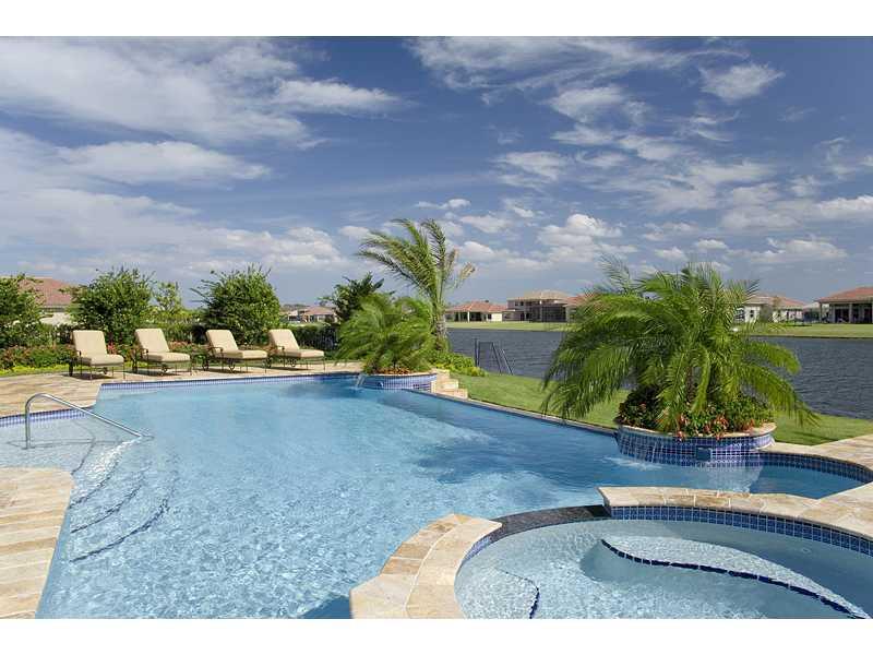 GEM W/LAKE VIEWS ON ALMOST AN ACRE. ARCHITECTURAL DESIGN, MAX USE OF SPACE, TONS OF UPGRADES. CIRCULAR DRIVEWAY, PAVERED WALKWAYS LEADING TO CHILD PROTECTED POOL, FENCED PATIO. HEATED SALTWATER INFIN EDGE POOL/SPA, WATERFALLS/UNDERWATER LIGHTS, TIKI HUT B AR, TRAVERTINE MARBLE DECK. WTR SOFT SYSTEM. INSIDE: MARBLE/WOOD FLRS; COFFERED CEILINGS; GOURMET KITCHEN, WOOD CABINETS, GRANITE, CTR COOK ISLAND; WET BAR; WINE FRIG; OFFICE & ENTERTAINMENT CTR, CROWN MOLDING, HURRICANE SHUTTERS, FAB GATED COMMUNITY...!!