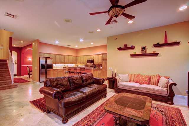 STUNNING HOME SITUATED IN SOUGHT AFTER COVE III IN SAVANNA.TRAVERTINE THROUGHOUT FIRST FLOOR, PLANTATION SHUTTERS DINING, DEN AND MASTER, GOURMET KITCHEN S/S APPLIANCES, DOUBLE EDGE GRANITE COUNTERS, ACCORDIAN SHUTTERS UPSTAIRS AND DOWNSTAIRS. LARGE BED ROOMS AND ADD'L PLAYROOM UPSTAIRS CAN BE USED AS 6TH BEDROOM, WALK IN CLOSETS IN EVERY ROOM, ADDITIONAL WALK-IN ATTIC. PRIVACY ABOUNDS IN BEAUTIFULLY PAVERED RESORT STYLE POOL & SPA WITH PLENTY OF ROOM TO ENTERTAIN. UNIQUE HOME, UNIQUE LOCATION.
