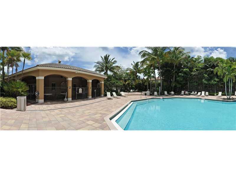 Grand 2/story home located on quiet cul-de-sac in small guard gated community! No neighbor behind! One bedroom/bath on 1st floor! Huge master suite has sitting area, his/hers walk-in closets, fabulous master bath has dual sinks, separate tub/shower. Forma l dining. Spacious eat-in kitchen with steel appliances, breakfast nook, snack bar. Tile on diagonal, crown molding, chair rail, closet organizers, plantation & accordion shutters. Fabulous community pool! Mango,banana,papaya,guanabana trees. A+ schools!