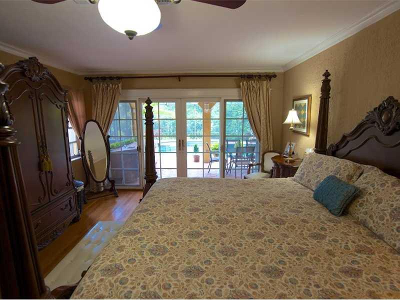 This classic 1926 home features pecky cypress wood ceilings; textured walls; arched entryways; wood floors; spiral staircase; fireplace; French doors; and new terracotta barrel tile roof. The stately living room flows into a large family room. A beautifu l covered patio includes a screened pool/spa w/waterfall. The split bedroom plan features a downstairs master with his/hers closets and updated bath; 3/2 upstairs. Complementing the home is an office, 1 car garage, updated kitchen and formal dining.