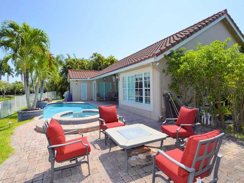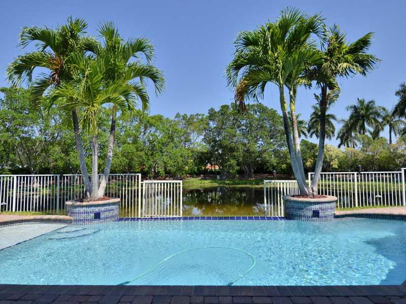 Beautiful, updated former Bianca model home in exclusive Laguna Springs II.Come to see this private lake view from covered patio&infinity-style pool with spa and palm trees.This home is located in one of the bigest lots in the neighborhood (10,837sqft).It features light & bright views, neutral tile throughout living areas, engineered wood floors in bedrooms, spacious kitchen with granite countertops,new appliances,roof(2010), water heather,pavered patios& more.Don't miss this great home.It won't last !