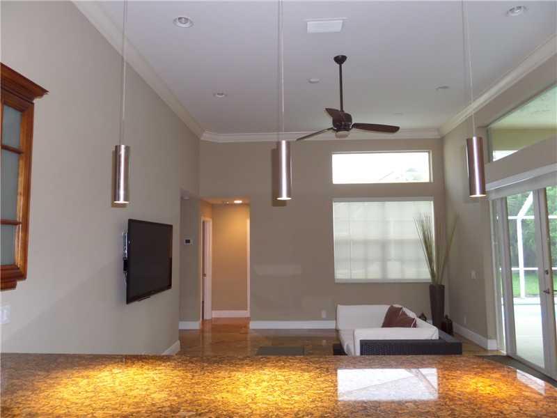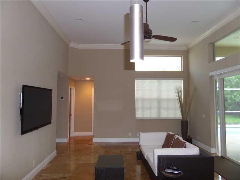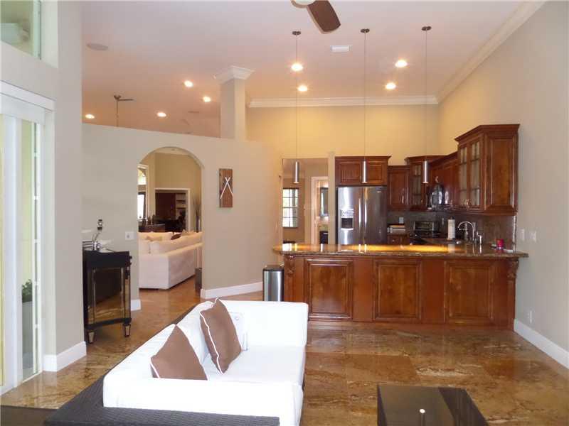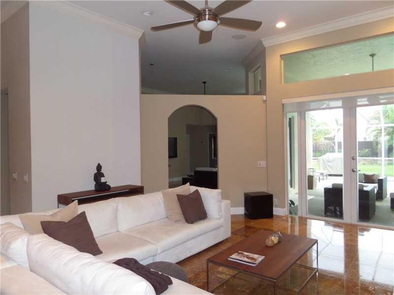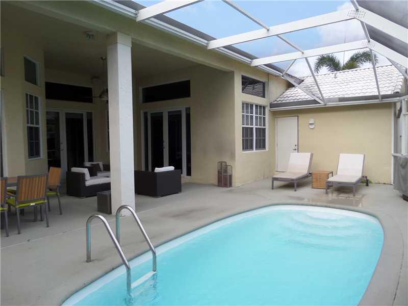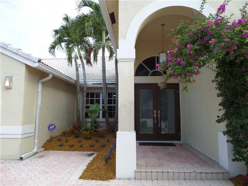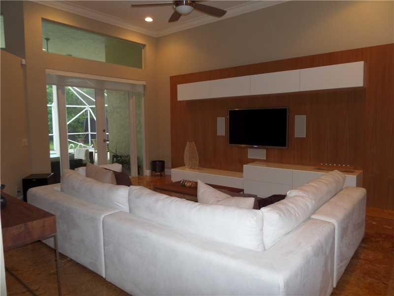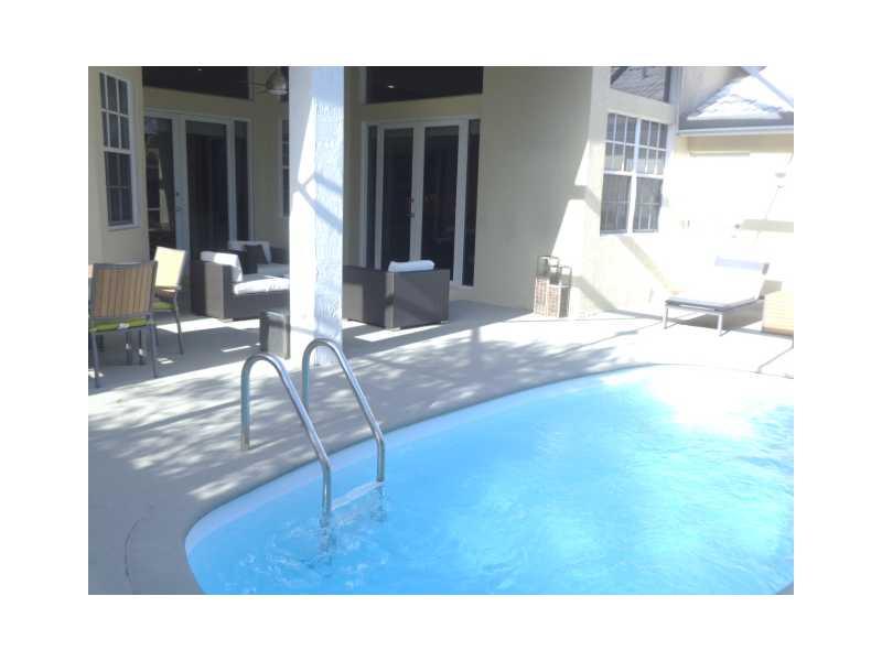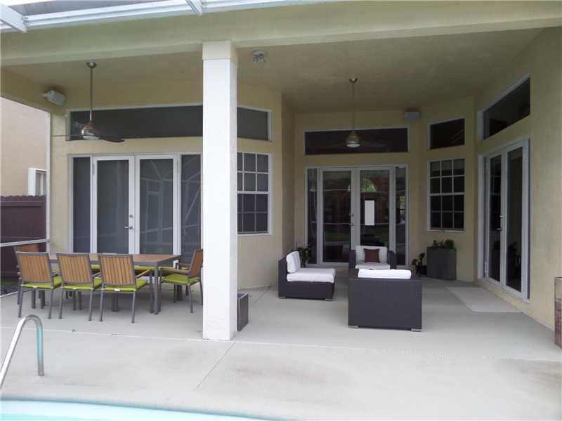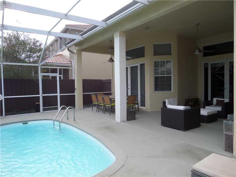 Elegant 5/3.5 Pool Home boasting Travertine Tile and Crown Molding throughout Living area, Laminate floors in Master and Office. Private Guest Room and Bathroom. Custom Closets, Large Office consist of a Built-In His and Her Desk with lots of storage, Sur round Sound in Living area and Patio. Laundry room with hi-efficiency washer and dryer, built in sink and cabinets. Foyer has built in planter. Covered Patio, Accordion Shutters, Elementary School continently located right outside the community.