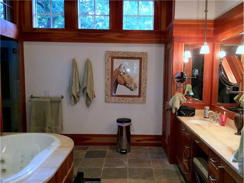 In a lush tropical garden sits a home that exudes warmth & family. Comfortable living areas surround the kitchen of wood cabinets, granite counters, gas range & eclectic breakfast area. An east wing includes 2 BRs & an office w/ oak floors and 2 bths. Th e newer SW wing is stunning w/ cherry floors, window trim & doors to match... & includes a huge master-suite w/ an alluring bath of slate floors, huge shower & more. A guest room & bath also connect to the FR w/ its full bar & cabana bath.