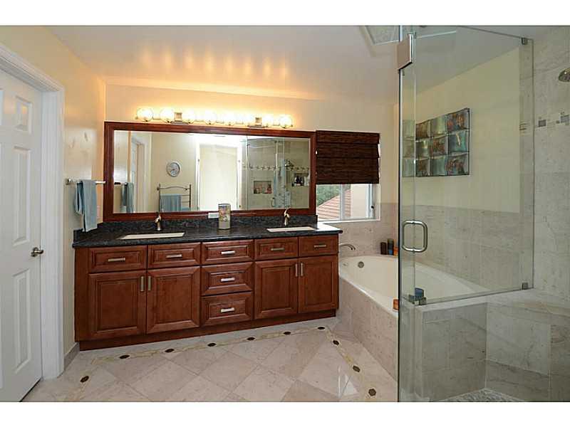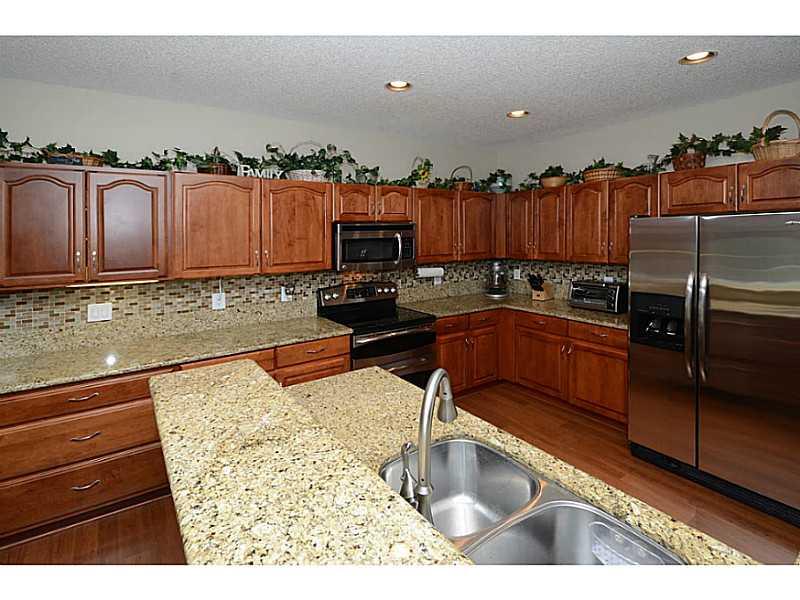 Meticulously maintained 4BR/3.5BA plus loft. Loft can be converted to a 5th bedroom. Nicely upgraded kitchen with wood cabinets, granite counters and stainless steel appliances. Master bathroom has be remodeled with wood cabinetry, granite counters, under -mounted dual sinks and frameless glass shower. Professionally installed wood laminate flooring in the social areas and carpeting on the second floor. Accordion shutters on all the windows. Property is situated on a quiet cul-de-sac.