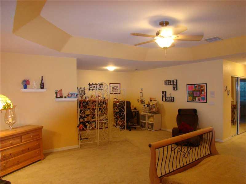 Spacious/bright 2-story home located in family-oriented gated community. Open floor plan, 1 bedroom and full bathroom on 1st flr, 3 car garage, large diagonal tile 1st floor, carpet 2nd flr, granite countertop in kitchen, marble bthrms, Roman tub and sepa rate shower in master, his/her vanities, his/her large walk-in closets, tray ceiling in master w/sitting area (can be used as office), fully fenced nice size bckyrd, breakfast nook, formal dining room. ½ block to Clubhouse/pool/gym/tennis/bsktball courts.