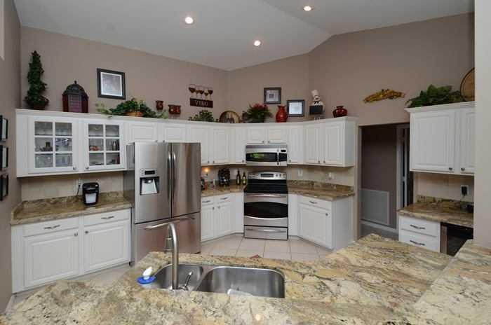A RARE FIND..THIS 4/3 WITH A 3 CAR GARAGE EXECUTIVE HOME IS LOCATED ON ONE OF THE PREMIUM RIDGE LOTS! THIS BEAUTY FEATURES A REMODELED KITCHEN WITH A WINE REFRIGERATOR, VAULTED & KNOCKDOWN CEILINGS, CUSTOM CLOSET ORGANIZERS, UPGRADED LIGHT/FAN/PLUMBING FI XTURES, 3 WAY BDRM SPLIT, DUAL SINKS IN MASTER BATHRM WITH SEPARATE TUB & SHOWER, TILED FLOORS IN LIV AREAS, INSIDE LAUNDRY RM! PROFESSIONALLY LANDSCAPED WITH CONCRETE CURBING! VERY PRIVATE FENCED BACKYARD THAT EXTENDS ONTO RIDGE! COMMUNITY POOL!